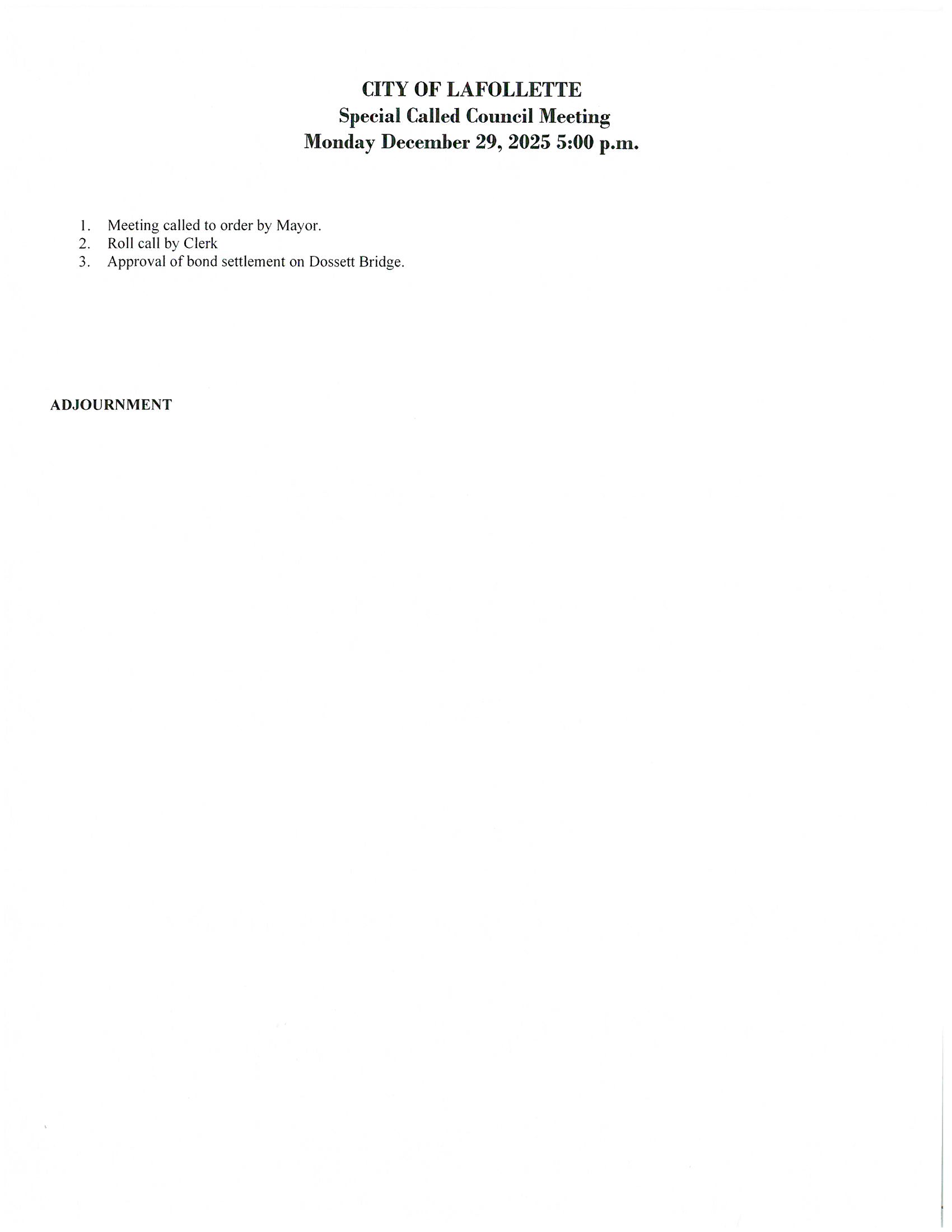 All Public Hearings and City Council Meetings are held in the Council Room at the City of LaFollette Municipal Building. Meeting are held on the 1st Tuesday of each month at 5:30PM.